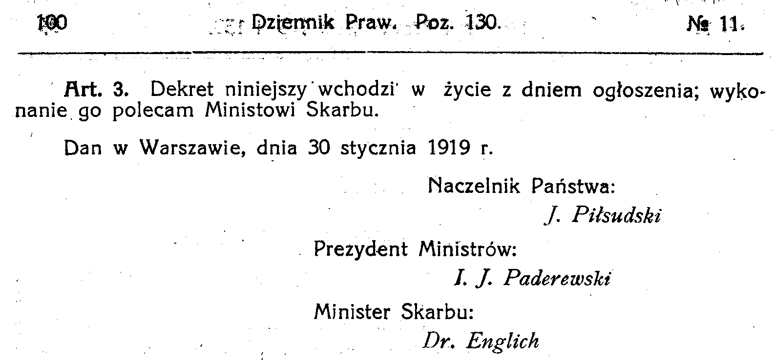 D19190111 Dekret w sprawie częściowego poboru