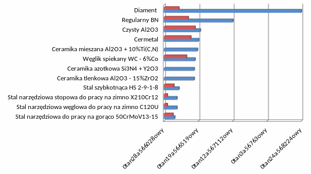 3. Porównanie twardości oraz maksymalnych temperatur pracy różnych materiałów narzędziowych: