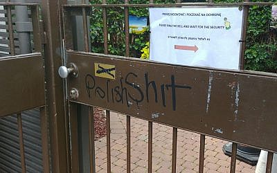 Swastyki i hasła na bramie Polskiej Ambasady w Tel Awiwie, 18 lutego 2018.