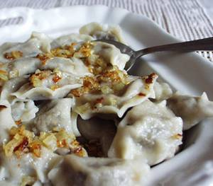 Świeżo ugotowane podajemy z przysmażoną cebulką i skwarkam
