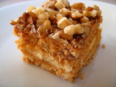Górę posmarować połową masy kajmakowej, chyba że ktoś lubi b. słodkie ciasta to można zużyć całą puszkę.