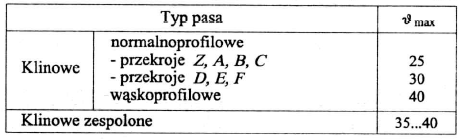 Tabela 4. Zalecane wartości odległości osi a dla przekładni o pasie klinowym.