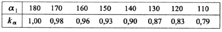 Tabela. 7. Wartości współczynnika kα uwzględniającego kąt opasania koła czynnego przekładni klinowych