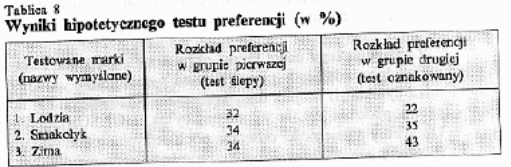 W pierwszej grupie odbywa się to bez etykiet (A, B, C), w drugiej z etykietami (test ślepy/test oznakowany),