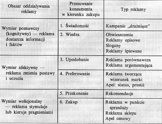 Działanie reklamy ma charakter etapowy, a konsument jest przedstawiany jako jednostka ucząca się oraz będąca w stanie wybrać najlepszy dla siebie koszyk dóbr, na podstawie zebranych informacji
