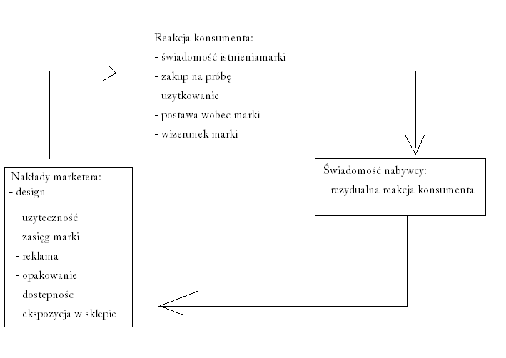 - opisywane takimi wskaźnikami, jak: odsetek konsumentów używających stale danej marki, odsetek konsumentów używających okazjonalnie danej marki, odsetek konsumentów, którzy spróbowali danej marki i w wyniku kontaktu kontaktu z nią, odrzucili ją ze swojego repertuaru.