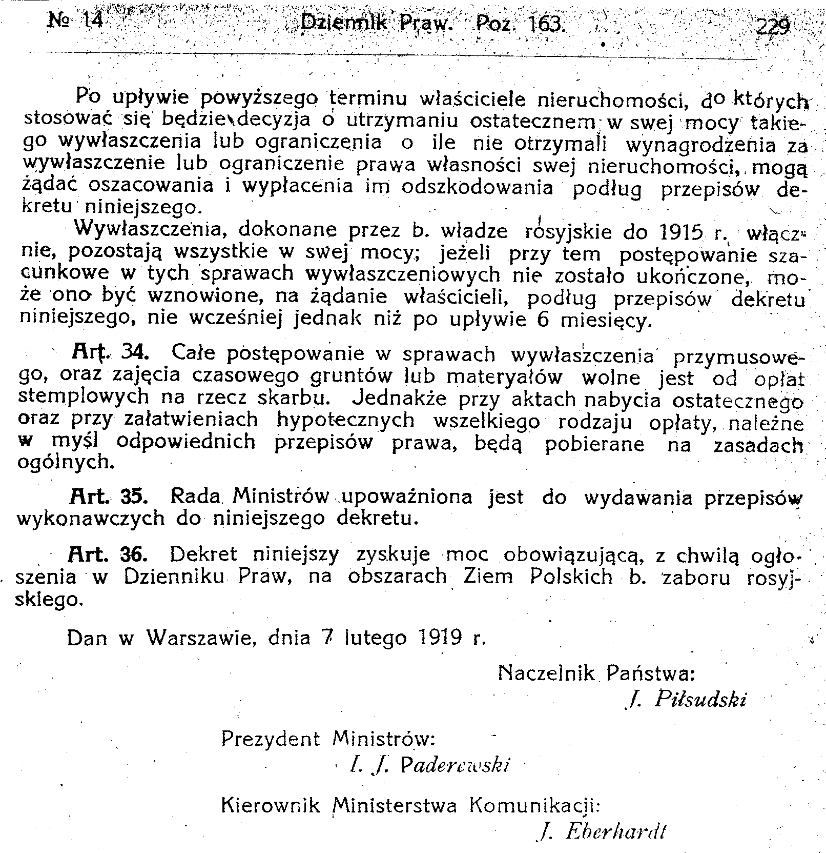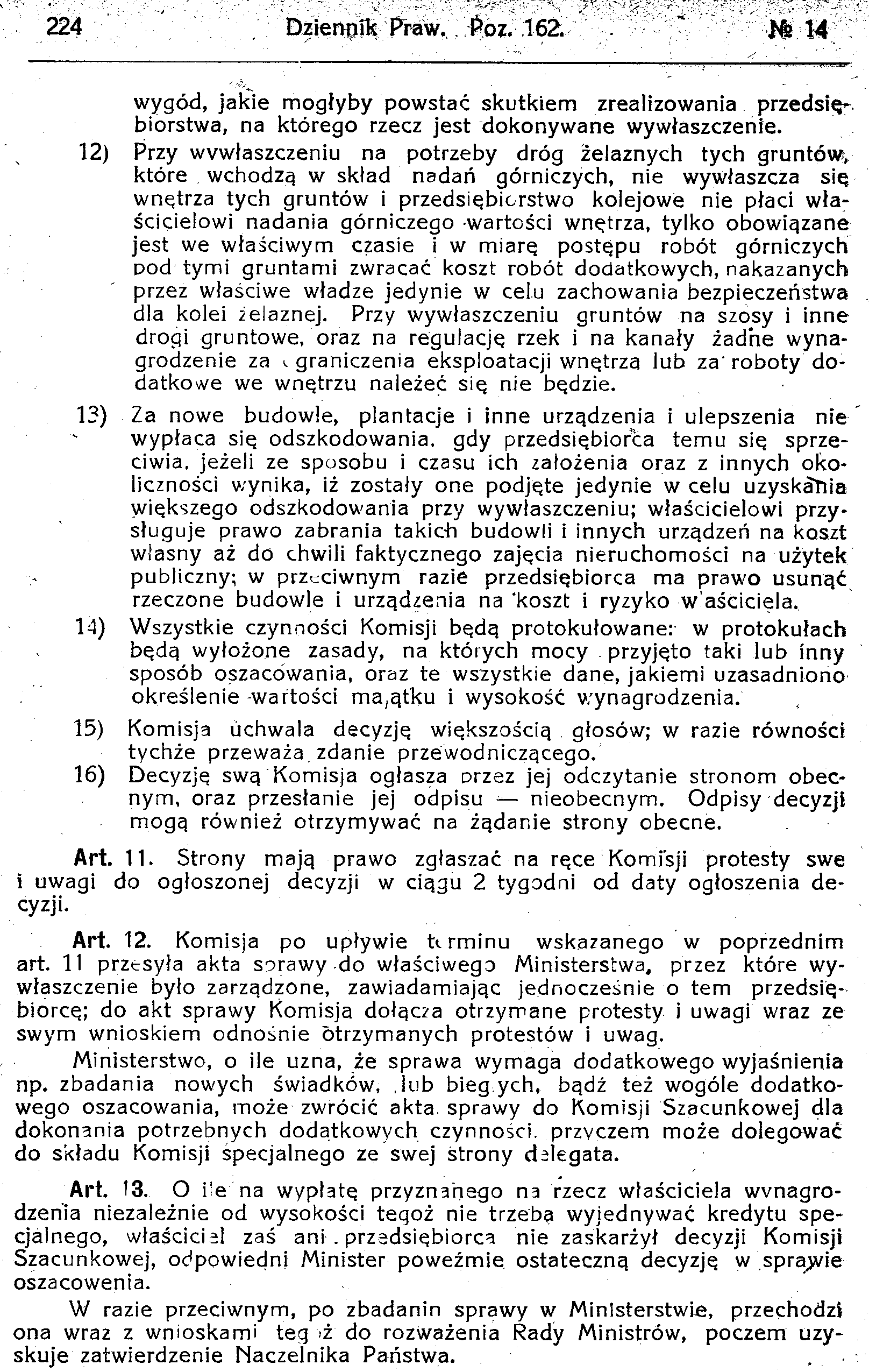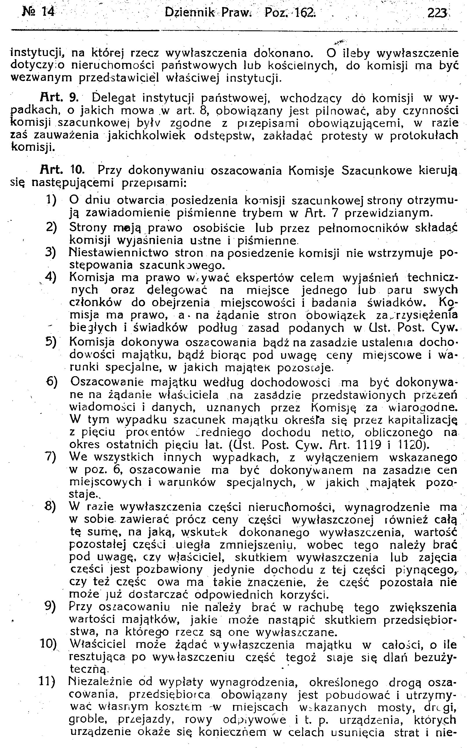D19190162s Dekret w przedmiocie przepisów tymczasowych o wywłaszczeniu przymusowem na użytek dróg żelaznych i innych dróg komunikacyjnych lądowych i wodnych oraz wszelkich