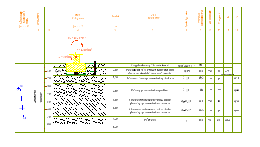 Pył szaro-brązowy przewarstwiony piaskiem |