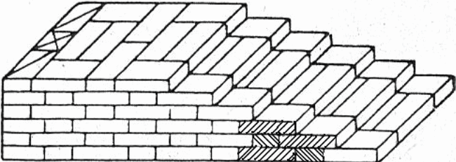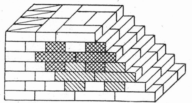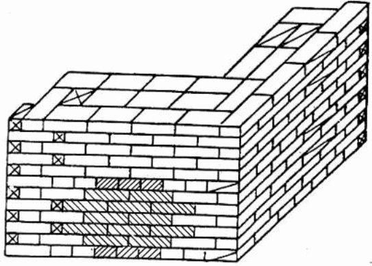 ma przylegać do cegieł ułożonych uprzednio. W wewnętrznych rzędach muru cegły układane są bez