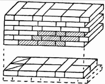 dwie cegły ułożone są wozówką, a jedna – główką do lica muru