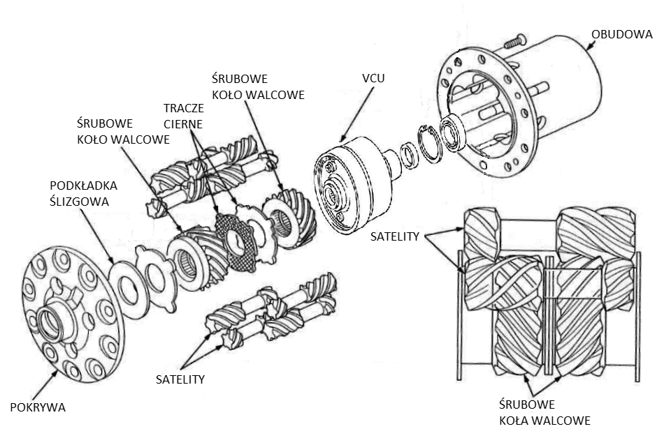Mechanizm jest połączeniem przekładni śrubowej oraz sprzęgła lepkościowego. Wewnątrz śrubowego mechanizmu różnicowego zamontowane jest sprzęgło lepkościowe zintegrowane z dwoma kołami walcowymi.