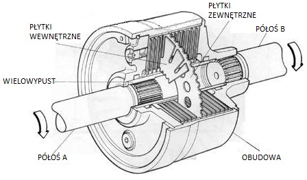 Zbudowany na bazie przekładni planetarnej ze sprzęgłem hydraulicznym wielopłytkowym. Obudowa sprzęgła ma kształt walca i wykonana jest najczęściej z aluminium. Wewnątrz występują dwa pakiety płytek, ułożone naprzemiennie, zanurzone w specjalnym oleju. Obudowa musi być bardzo szczelna, aby płyn znajdujący się w środku nie wydostawał się na zewnątrz. Każdy z pakietów połączony jest z odpowiednią półosią. Pakiety płytek różnią się od siebie. Pierwsze posiadają nacięcia na swoim obwodzie i są połączone za pomocą wielowypustu z pierwszą półosią. Płytki z otworami są połączone z obudową, a ta jest zespolona z drugą półosią.
