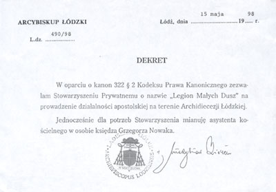 apostolskie dla Legionu Małych Dusz,