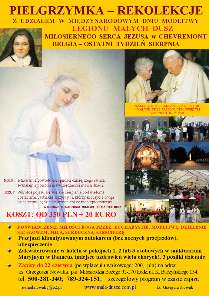 W Polsce Legionem Małych Dusz opiekuje się ks. Grzegorz Nowak z Archidiecezji Łódzkiej: male-dusze.com.pl