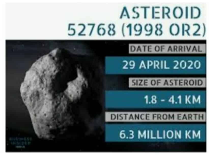 28 marca 2020 na godlikeproductions.com pojawiła się wiadomość (https://www.godlikeproductions.com/forum1/message4329134/pg1), zamieszczona jakby w imieniu wtajemniczonego z NASA. Według tej informacji, w regionie 2 kwietnia 2020, NASA oczekuje uderzenia w planetę kolosalnej asteroidy.