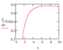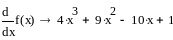 1 krok: Liczę pochodną pierwszego rzędu. Wpisuję komendę Shift + / i otrzymuję: