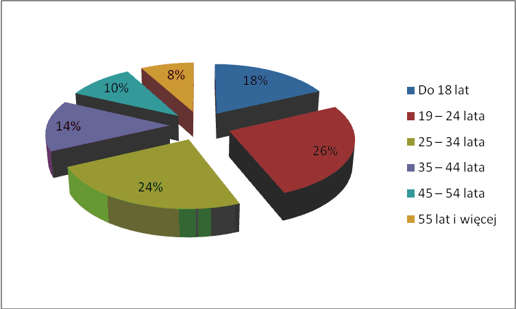 Jak widać z przedstawionych powyżej danych, najbardziej liczną grupą odbiorców VOD są osoby młode. Najwięcej osób mieści się w przedziale wiekowym od 15 do 24 lat (84%) oraz w przedziale wiekowym od 25 do 34 lat (80%). Stosunkowo liczna jest również grupa odbiorców w wieku od 45 do 54 lat. Stanowią oni 68% wszystkich internautów oglądających VOD. Nieco mniej liczną grupą są osoby w przedziale wiekowym od 35 do 44 lat. Stanowią one 65% ogółu respondentów. Co ciekawe, osobami korzystającymi z VOD są także ludzie w wieku powyżej 55 lat (55%) co oznacza, że nie jest to rozwiązanie przeznaczone wyłącznie dla młodych8. Jest to stosunkowo dobry wskaźnik zwłaszcza biorąc pod uwagę fakt, że większość osób w tym wieku niechętnie korzysta z nowych rozwiązań technologicznych. Dlatego też tak wysoki odsetek wśród internautów z tej grupy wiekowej stanowi dobry wynik.