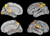 The voxelwise threshold for activation was set at PFWE < 0.05, corrected for the number of resolution elements in each of the regions of interest (ROI) by using the SPM small volume correction (SVC) procedure together with brain masks defined by the automated anatomical labeling toolbox (AAL) (www.fil.ion.ucl.ac.uk/spm/ext). The brain masks defined the brain regions over each of which the SVC was performed. These brain regions included subgenual ACC (BA 25), frontal lobule (BA 47), insula, temporal lobule (Wernicke's area), occipital lobule, parietal lobule, angular gyrus (BA 39), supramarginal gyrus, lingual gyrus, PCC, precuneus, putamen, caudate, and thalamus. The global pattern of the r-CBF changes in these areas was illustrated using caret software (see Figs. 2and and33).