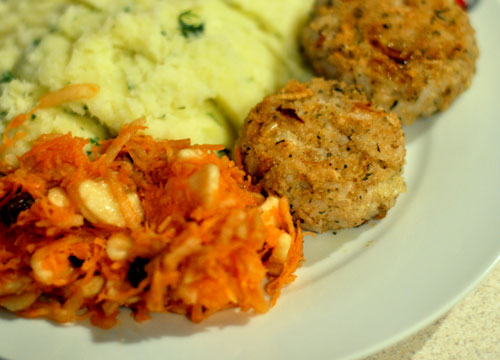 2-3 jabłka zetrzeć na tarce z dużymi oczkami.
