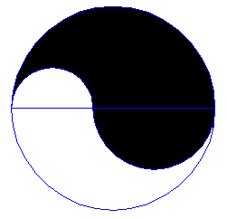 Trzema liniami równej długości podziel koło na 4 części o równych polach.