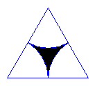 Bok trójkąta równobocznego ma długość a. Połączono łukami o promieniach długości a/2 i środkach w wierzchołkach trójkąta środki jego boków. Oblicz pole zakreskowanej części tego trójkąta.