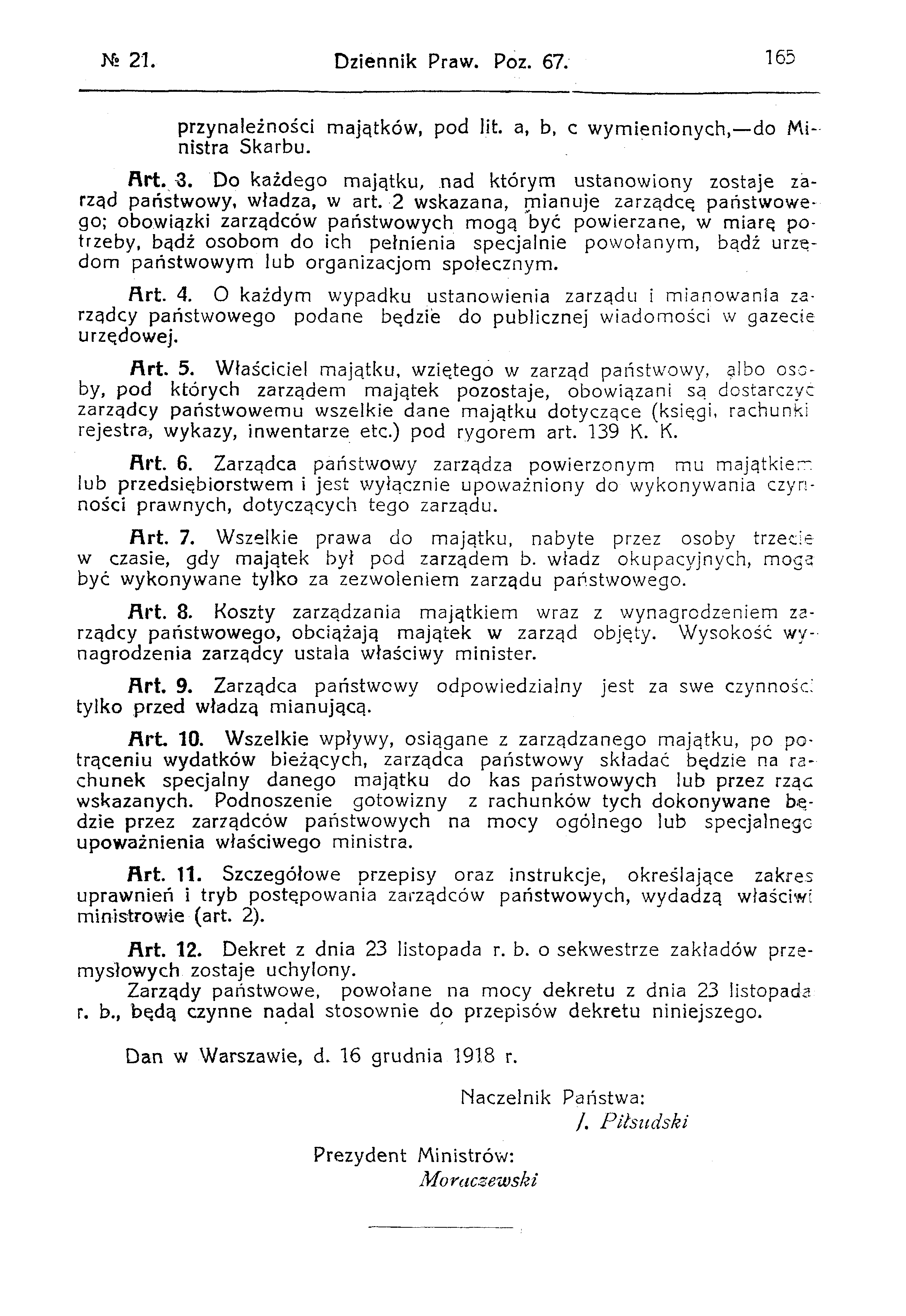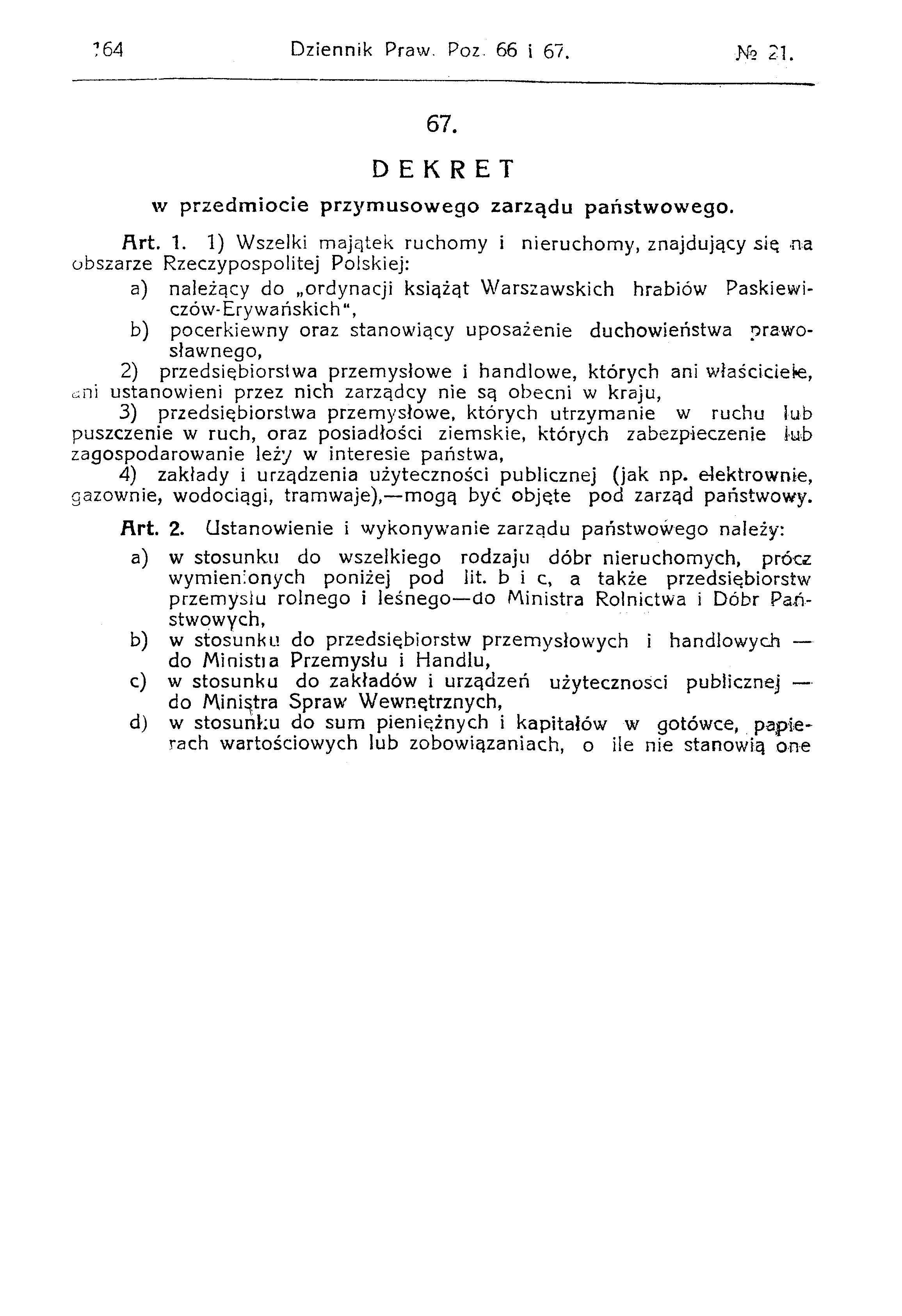 D19180067 Dekret w przedmiocie przymusowego zarządu państwowego