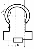 Pod działaniem siły elektromotorycznej w zamkniętym obwodzie popłynie prąd o zwrocie zgodnym z e. Prąd ten zgodnie z regułą Lenza stara się o zapobieżenie zachodzącej zmianie. Przy narastaniu więc strumienia Φ prąd i wytwarza własny strumień magnetyczny przeciwnie skierowany do strumienia Φ.