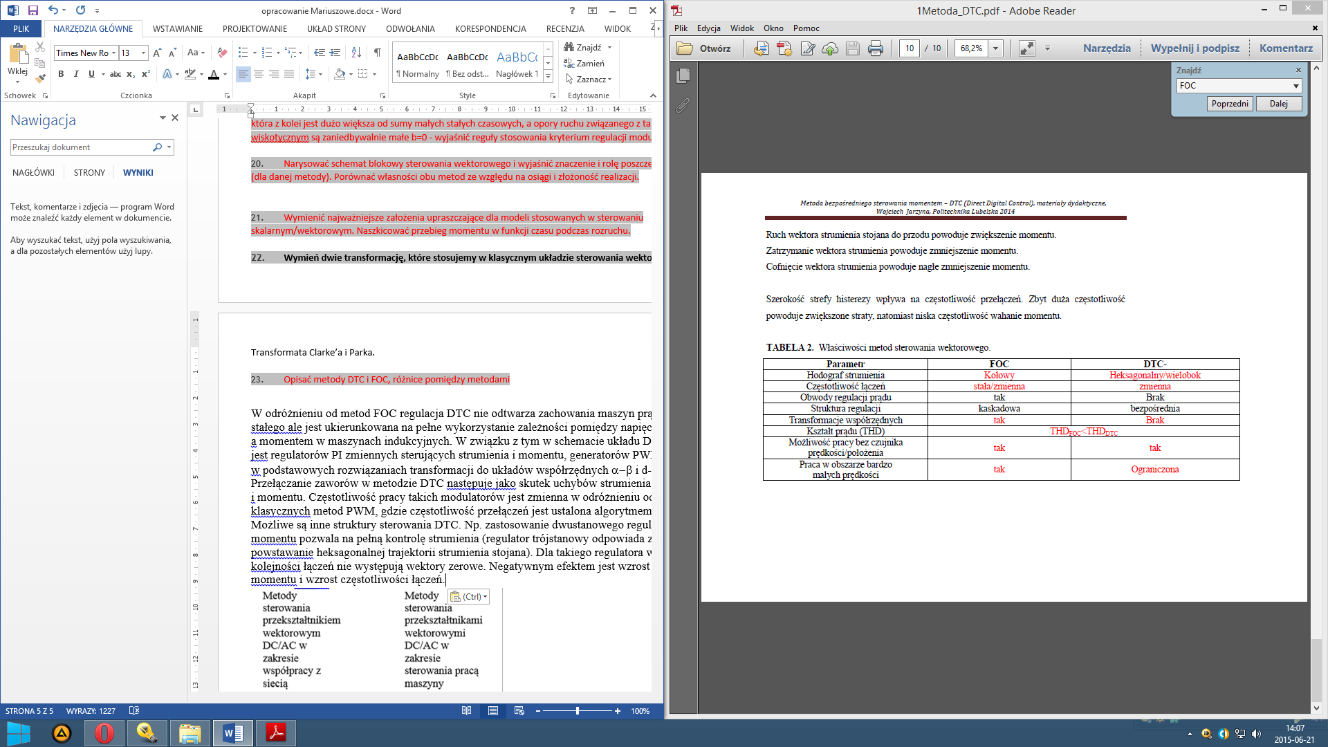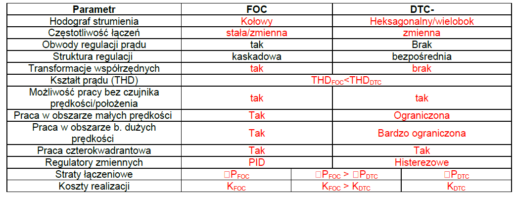 Opisać metody DTC i FOC, różnice pomiędzy metodami