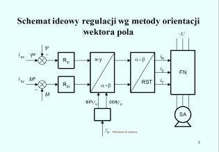 Narysować schemat blokowy sterowania wektorowego i wyjaśnić znaczenie i rolę poszczególnych bloków (dla danej metody). Porównać własności obu metod ze względu na osiągi i złożoność realizacji.