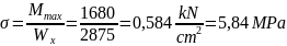 Sprawdzenie naprężeń zginających: