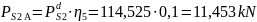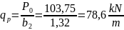 Obciążenie równomiernie rozłożone od nacisku koła PS2 na powierzchnię b1 x b2 :