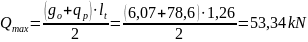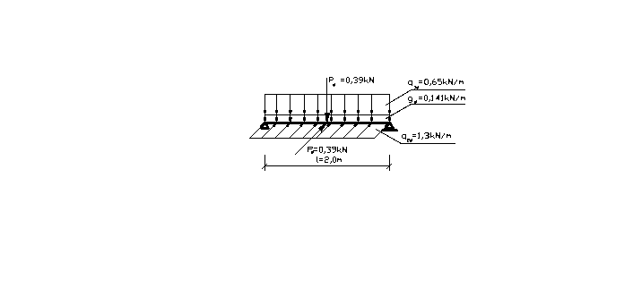Obciążenie równomiernie rozłożone przypadające na dwa dyle o szerokości 0,2m: