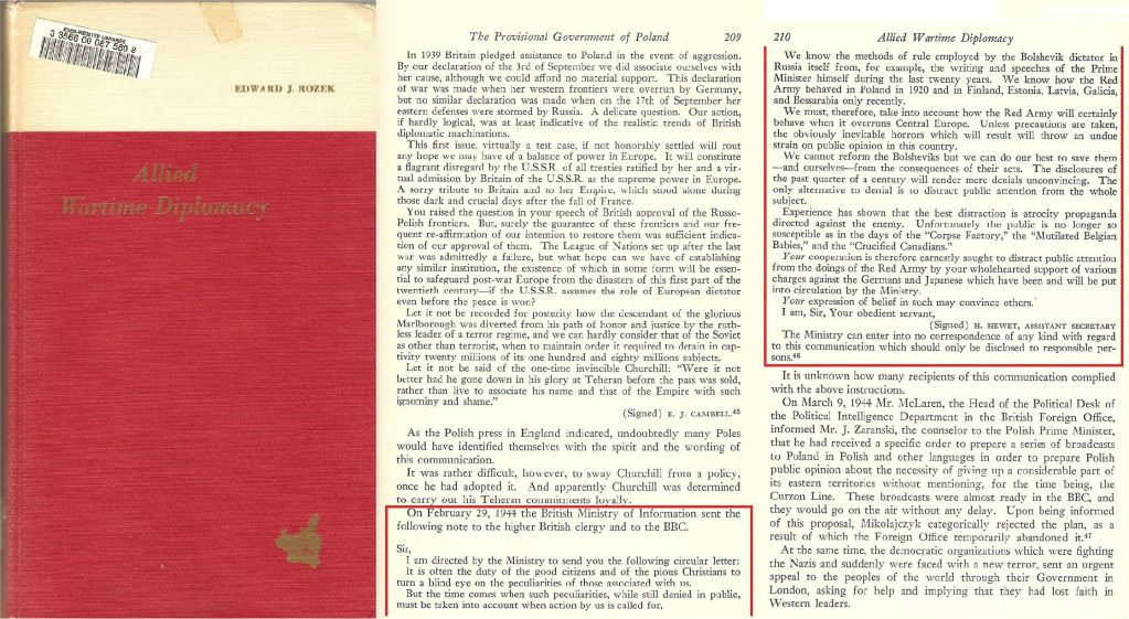 Poniżej list z 29.02.1944 brytyjskiego Ministerstwa Informacji do BBC i wyższych rangą brytyjskich księży.