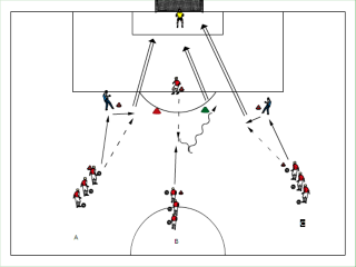Podział na dwie grupy, pozostali na ćw. strzału na bramkę.