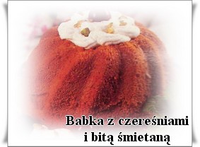 Ciasto: Masło utrzeć na pianę, stopniowo dodawać żółtka i dalej ucierać. Dodać mleko, sok z cytryny, wsypac mąkę z proszkiem do pieczenia, wymieszać. Na końcu dodać pianę z białek. Dormę z kominkiem posmarować tłuszczem, posypać bułką tartą, wlać ciasto. Piec około 35 minut w temperaturze 200 st.C. Wychłodzoną śmietanę ubić z cukrem pudrem i cukrem waniliowym. Czereśnie umyć i wydrolować. Ciasto udekorować bitą śmietaną i czereśniami. Posypać orzeszkami.