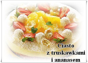 Ciasto: Białka oddzielić od żółtek. Białka ubić z 3 łyżkami wody, powoli wsypując cukier. Do piany dodać żółtka, miąższ wanilii, mąkę ziemniaczaną, mąkę tortową, kawę, kakao i proszek do pieczenia. Piekarnik rozgrzać do temperatury 175 st.C. Ciasto przełożyć do tortownicy wyłożonej pergaminem i piec około 25-30 minut. Nie wyjmując z formy wystudzić. Białą polewę drobno pokruszyć i rozpuścić, na małym ogniu, w 250 ml śmietany. Krem schłodzić w lodówce około 5 godzin. Ananasy osączyć. 2 plastry odłożyć, resztę pokroić w grubą kostkę. Likierem kawowym skropić ciasto i ułożyć na nim naprzemiennie kawałki ananasów i plastry truskawek. Schłodzony krem ubić z 1 opakowaniem zagęstnika do śmietany. Krem wyłożyć na ciasto z owocami i gładko rozsmarować. Resztę śmietany ubić z cukrem i drugim opakowaniem zagęstnika do śmietany na sztywno. Zdjąć obręcz z ciasta. Śmietaną posmarować wierzch i boki ciasta, posypac wiórkami kokosowymi, przybrać ananasem i truskawkami. Na koniec ułożyć całe i przekrojone na pół kuleczki "Raffaello". Przed podaniem schłodzić w lodówce.