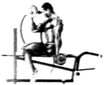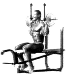 Pozycja wyjściowa: Siedząc na końcu ławki trzymaj sztangielki w obu rękach.