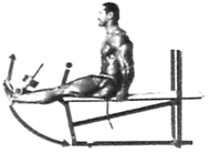 Pozycja wyjściowa: W siadzie na ławce spody kolan oparte o krawędź ławki. Podłóż śródstopie pod wałek dźwigni.