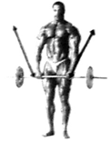 Ruch: Pilnując aby ramiona odsuwały się na boki, pociągnij sztangę prosto do góry do momentu gdy gryf dotknie brzucha.