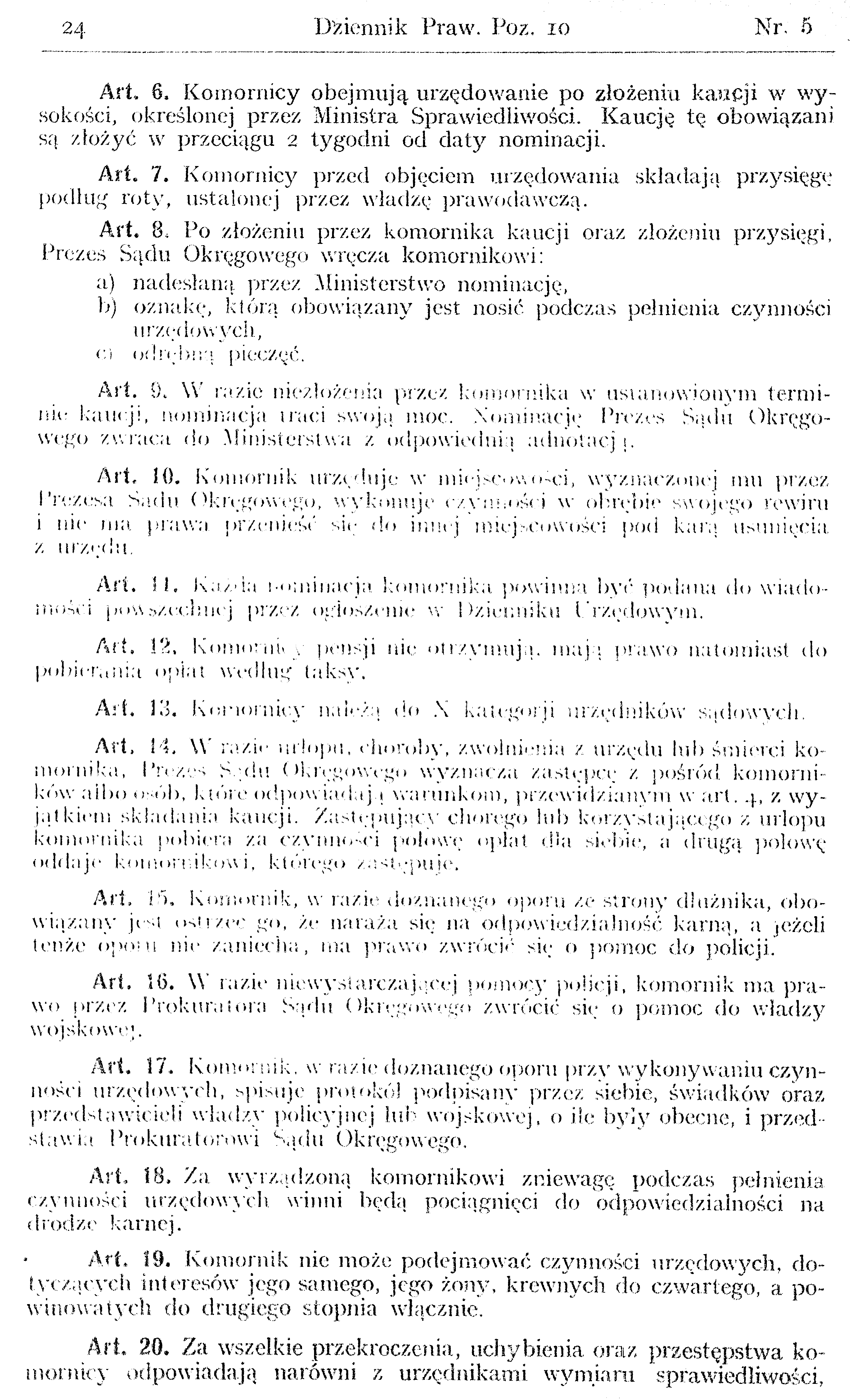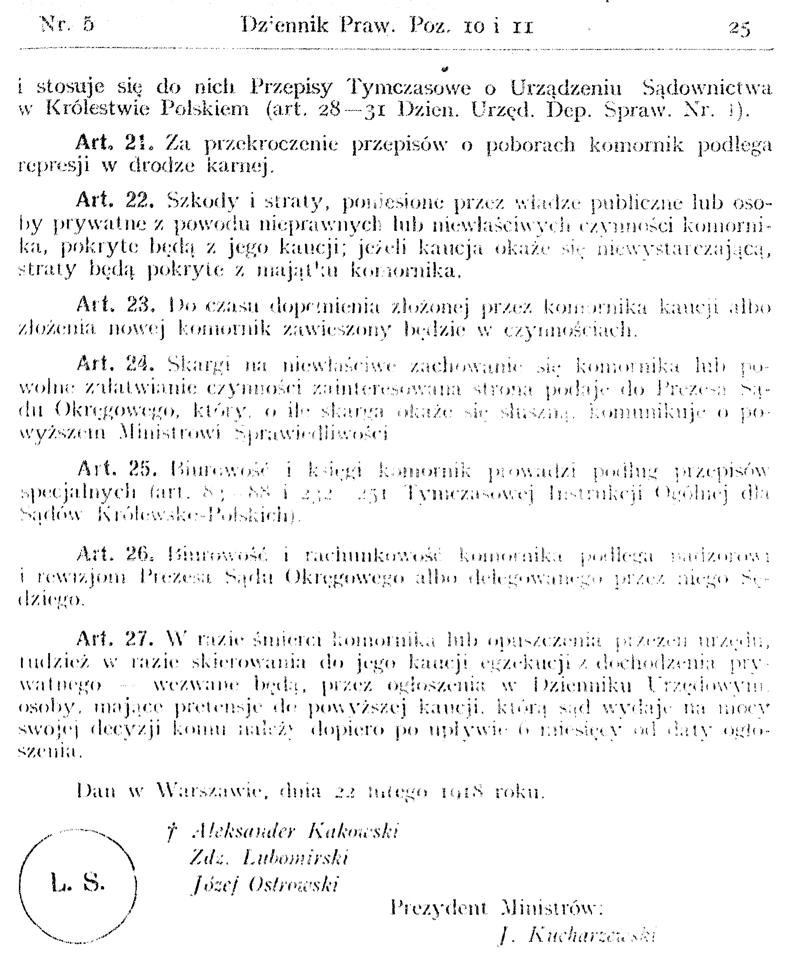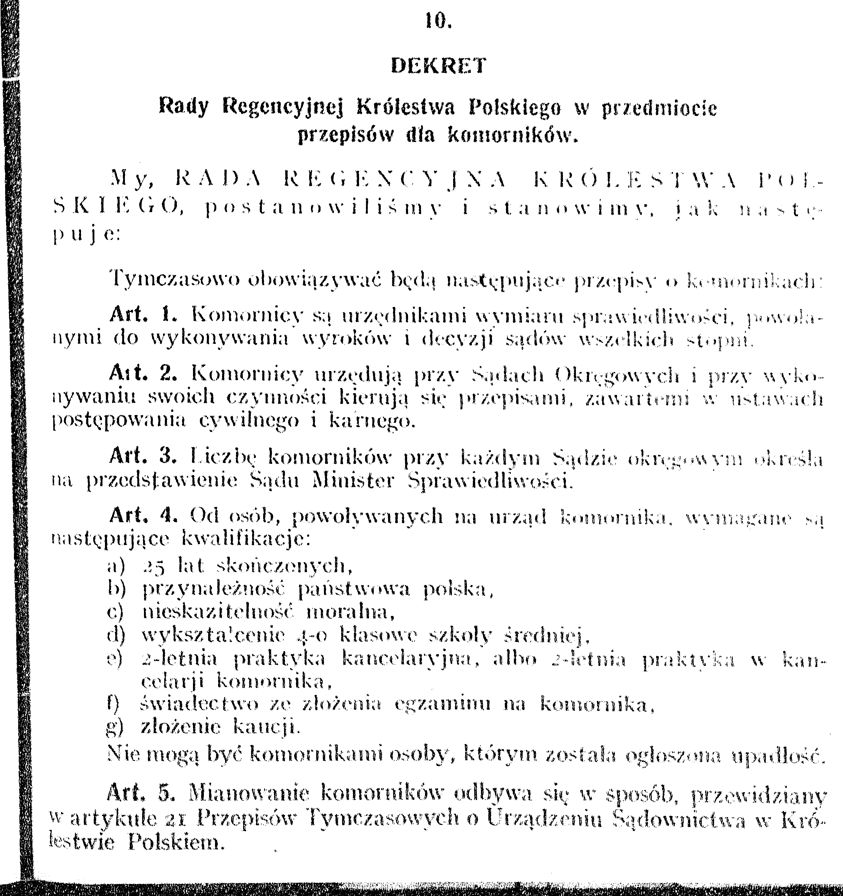 D19180010 Dekret Rady Regencyjnej Królestwa Polskiego w przedmiocie przepisów dla komorników