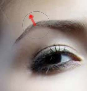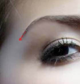 Wybieramy obszar powyżej linii brwi (kilka milimetrów nad