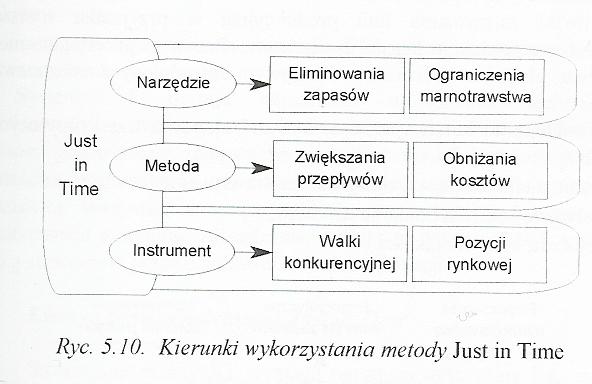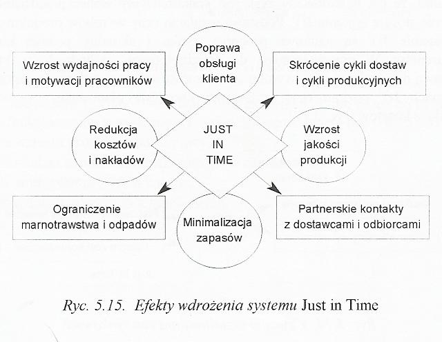 Just in time – to system organizacji dostaw w przedsiębiorstwie wszelkich elementów zaopatrzeniowych obejmujących: materiały, części zamienne, podzespoły, półfabrykaty itp., ściśle wg zgłoszonego przez odbiorcę zapotrzebowania, bezpośrednio na stanowisko pracy (linię produkcyjną) – „dokładnie na czas”. Taki system dostaw ściśle zsynchronizowanych w czasie z harmonogramem procesu wytwórczego (z pominięciem magazynów) pozwala na obniżenie kosztów oraz nakładów kapitałowych wyniku znacznego ograniczenia ( a nawet wyeliminowania) pomieszczeń i powierzchni magazynowych oraz radykalnego zmniejszenia środków obrotowych zamrożonych pod postacią zapasów.