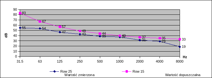 Poziom cisnienia akustycznego w oktawowych pasmach częstotliwości (Hz) |