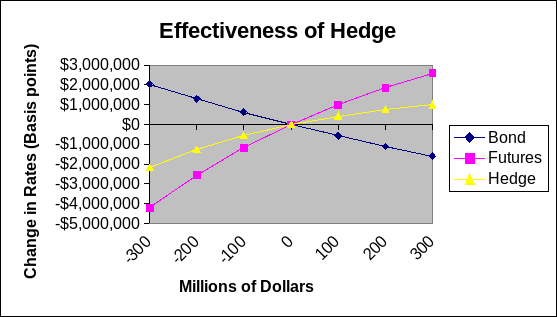 c. Create a graph showing the effectiveness of the hedge if the change in interest rates, in basis |