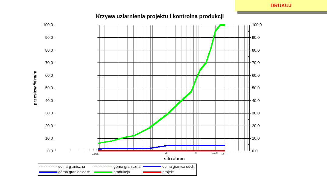 sito # | odsiewy materiałów po odpyleniu i korektach | odsiew | przesiew | dolna | górna | ||||||||||||