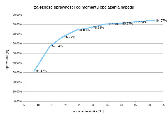 obciążenie hamulca | obroty silnika | obroty hamulca | obciążenie silnika | moment silnika | sprawność | ||||||||||||