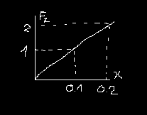 1. Na wykresie przedstawiono zależność siły Fz rozciągającej sprężynę od wydłużenie sprężyny (dla sprężyny nie-rozciągniętej x=0). Jaką pracę trzeba wykonać, Aby rozciągnąć sprężynę od położenia 0.1 m do położenia 0.2 m ?