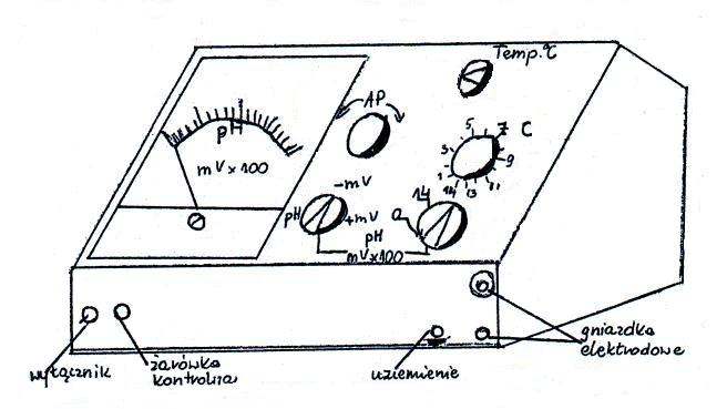 Pomiarów pH dokonuje się za pomocą pH-metru typ N-512. Wygląd zewnętrzny przedstawia
