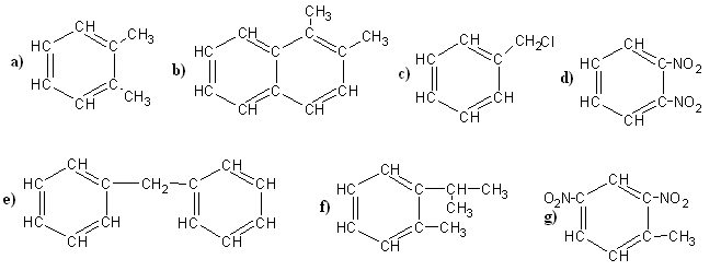 g) 1-chloro-2-fenyloetan h) difenylometan