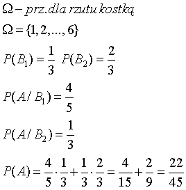 B1 - losujemy z drużyny X (wypadnie liczba podzielna przez 3) B2 - losujemy z drużyny Y (wypadnie liczba niepodzielna przez 3) sprawdzamy czy spełnione są założenia: 1 z 1